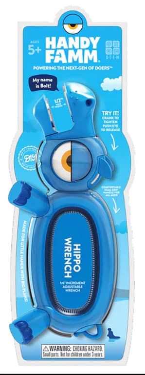 Meet the Hippo Wrench, the perfect real tool designed just for kids! This adjustable wrench is built for small hands, making DIY projects fun, safe, and engaging. With a kid-friendly ergonomic dual-handle design, Bolt provides better control and stability, helping young makers develop fine motor skills, problem-solving, and creativity. The interactive design allows kids to twist the ear crank to open and close Bolt’s mouth, reinforcing real-world mechanics in a playful way. Made from high-quality, child-safe materials, this durable wrench ensures a safe introduction to hands-on learning. Whether tightening or loosening bolts, kids gain confidence while staying screen-free. Ideal for birthdays, holidays, and little builders, the Hippo Wrench is the ultimate STEM tool to inspire the next generation of doers!